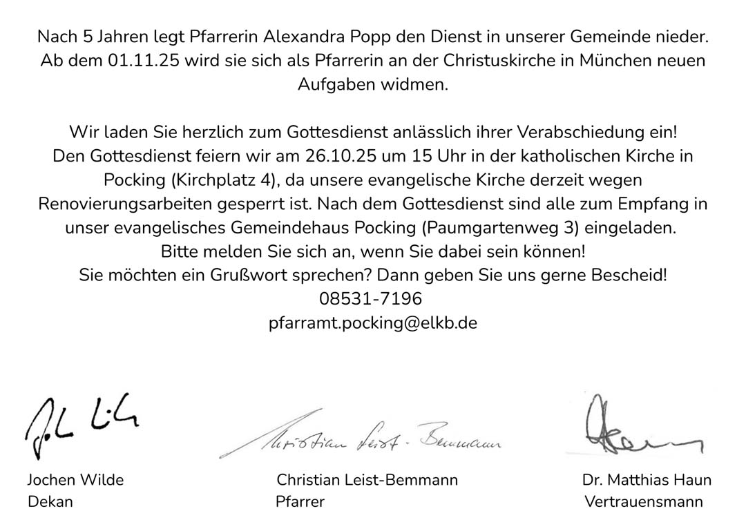 In Rotthalmünster wird derzeit die katholische Pfarrkirche renoviert. Da die katholische Gemeinde ihre Gottesdienste deshalb in der Friedhofskirche feiert, werden wir für unsere Gottesdienste von Mai bis September 2025 die Wieskapelle nutzen.